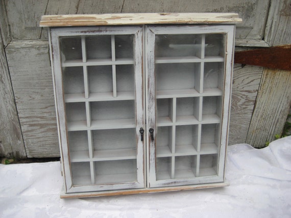 Fantastic Wall Mounted Small Curio Cabinet With Glass Doors. Added heart charm, rusty skeleton key and. 20h x 16w x 4 1/4d (outside), interior: